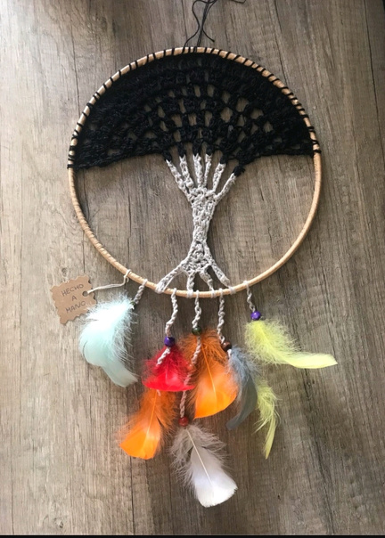 Caçador de Sonhos Árvore em croché com penas