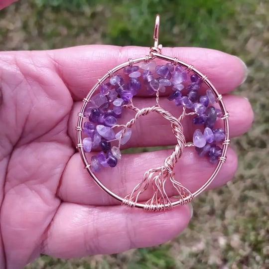 Pendente de arame dourado (5cm) feito com cascalho natural amethista