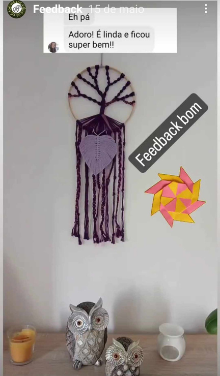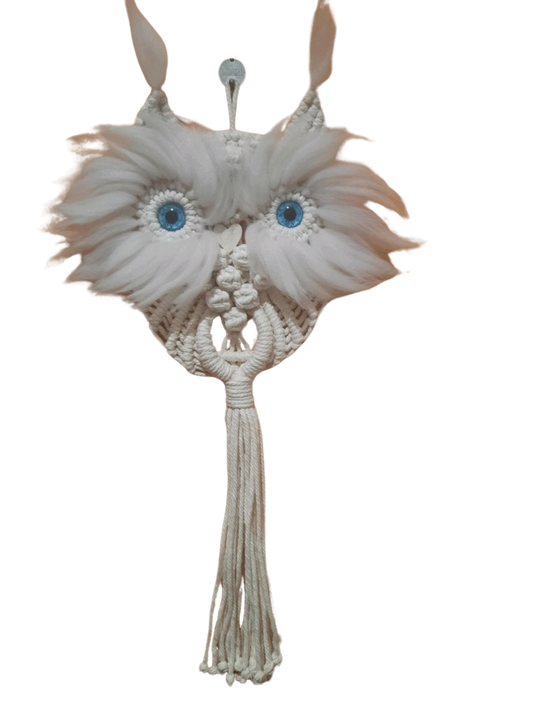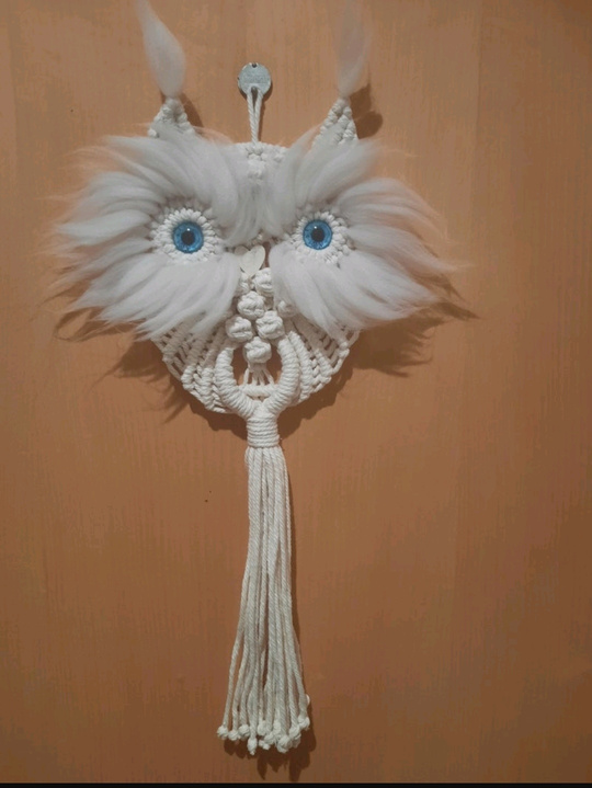 Caçador de Sonhos Coruja feito com fio 100% algodão em macramé