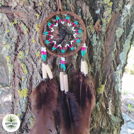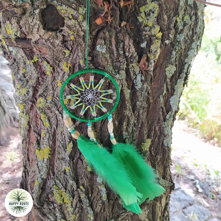 Caçador de Sonhos de teia feita com linha e missangas