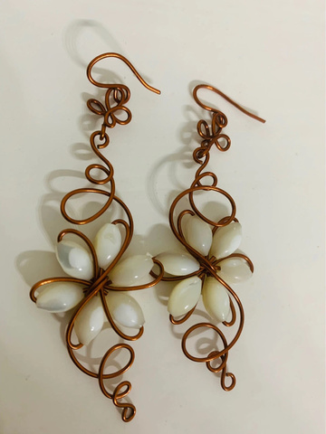Brincos em arame de cobre e madrepérola