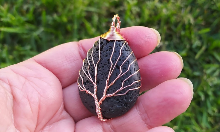 Pendente em arame dourado (4,5cm) sobre pedra vulvânica preta.