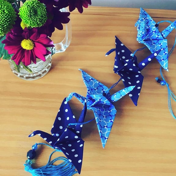 Fio de origami fantasia (só linha) com tsurus dobrados em folha fantasia